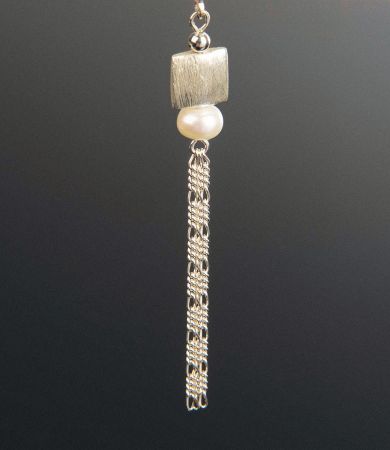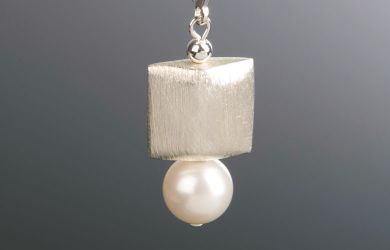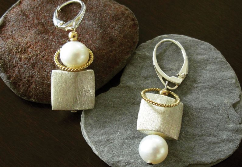 brushed sterling silver/gold vermeil/freshwater pearl. earring sets feature one pearl up, one pearl down.